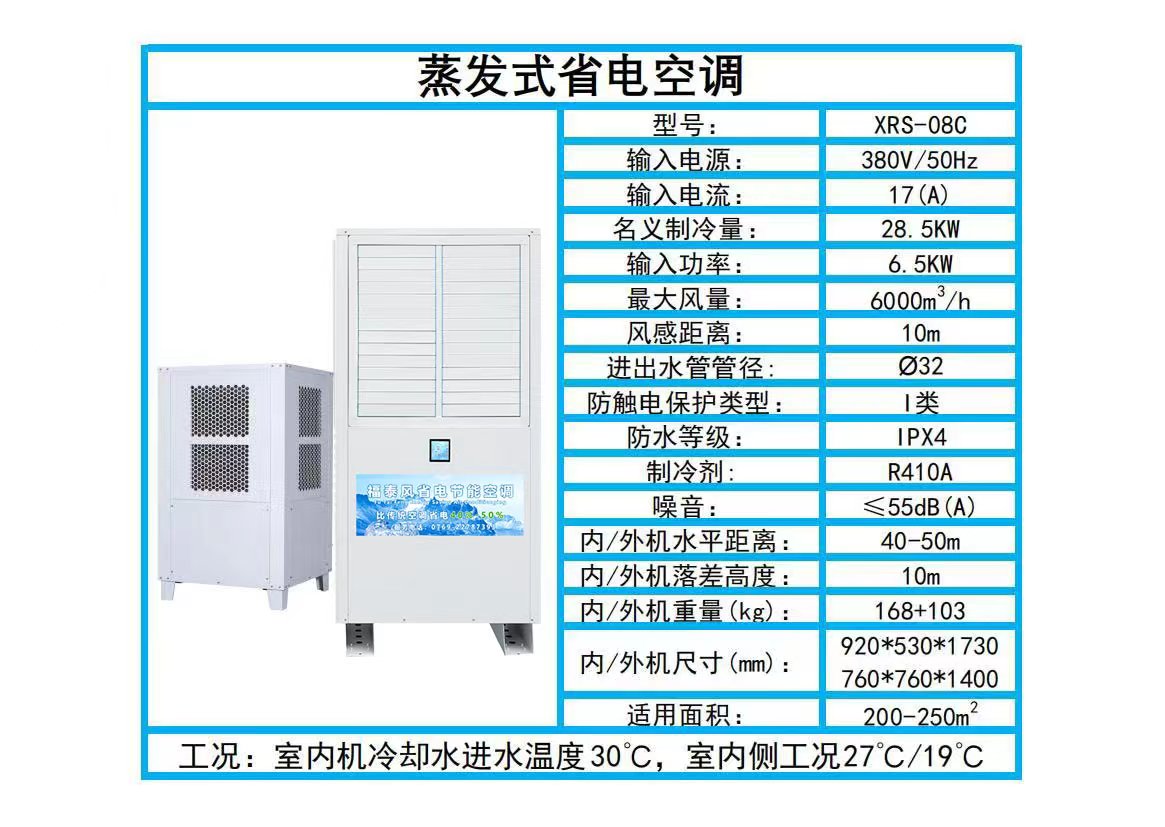 濕簾蒸發(fā)式冷凝技術(shù):利用濕簾蒸發(fā)式冷凝技術(shù)給循環(huán)水降溫,使溫度下降到常溫,再通過內(nèi)機(jī)的換熱器進(jìn)行熱交換,進(jìn)一步提升能效。